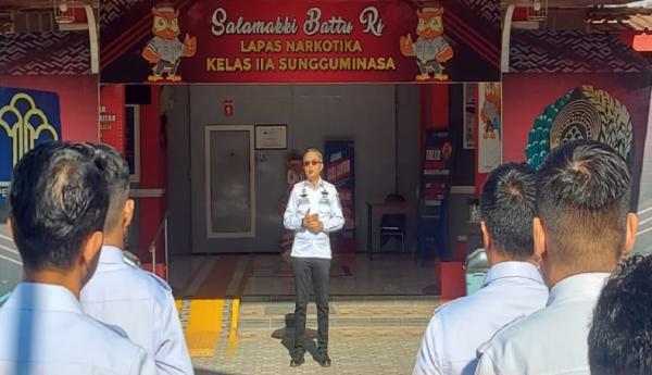 SOROTANJURNALIS.ID – Dalam apel pagi yang digelar di Lapas Narkotika Kelas IIA Sungguminasa pada hari ini, Kepala Lapas kembali menegaskan beberapa poin penting kepada seluruh pegawai, terkait aturan kunjungan tatap muka bagi pembesuk, pengelolaan media sosial, serta peran aktif seluruh pegawai dalam pengamanan.